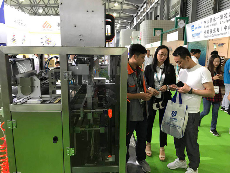 糖果给袋式包装机设备是一台二次进袋包装的大立式包装...